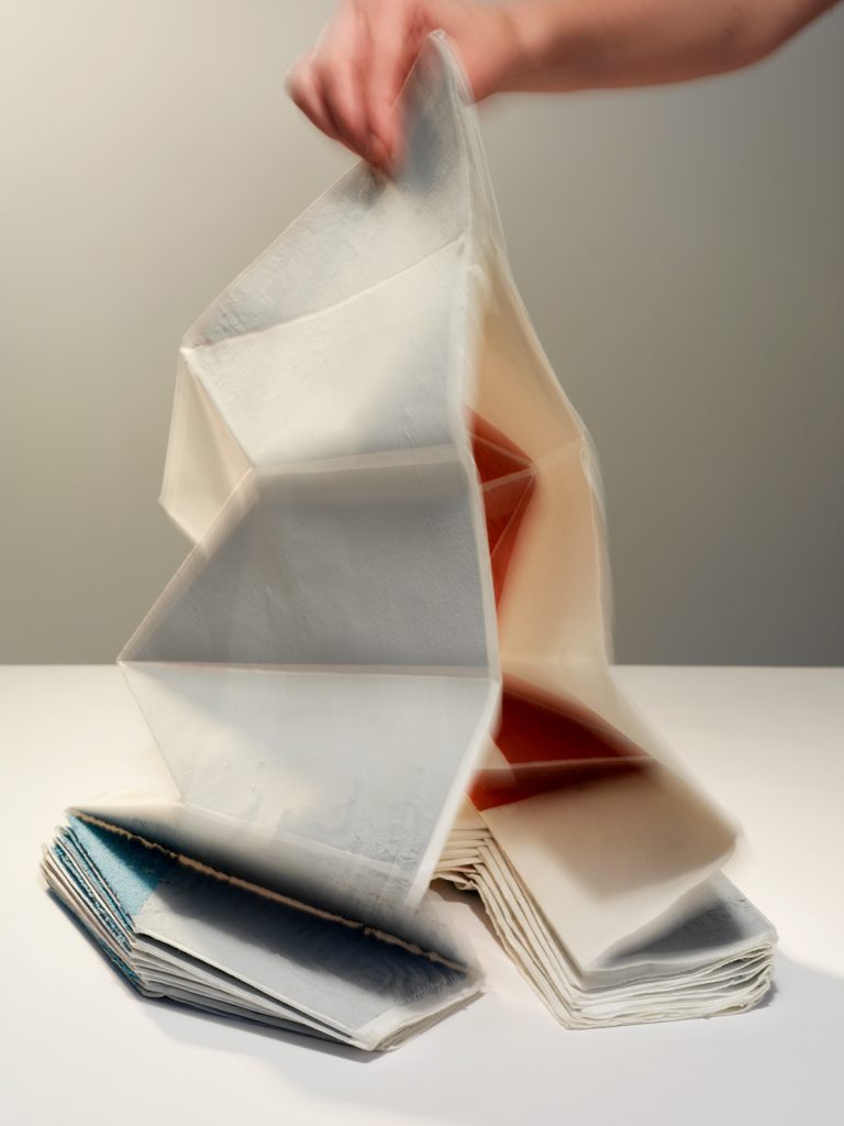 Image précédente Image suivante Geste 1-2 sérigraphie sur papier Japon 31 x 370 cm déplié), photo Paul Louis