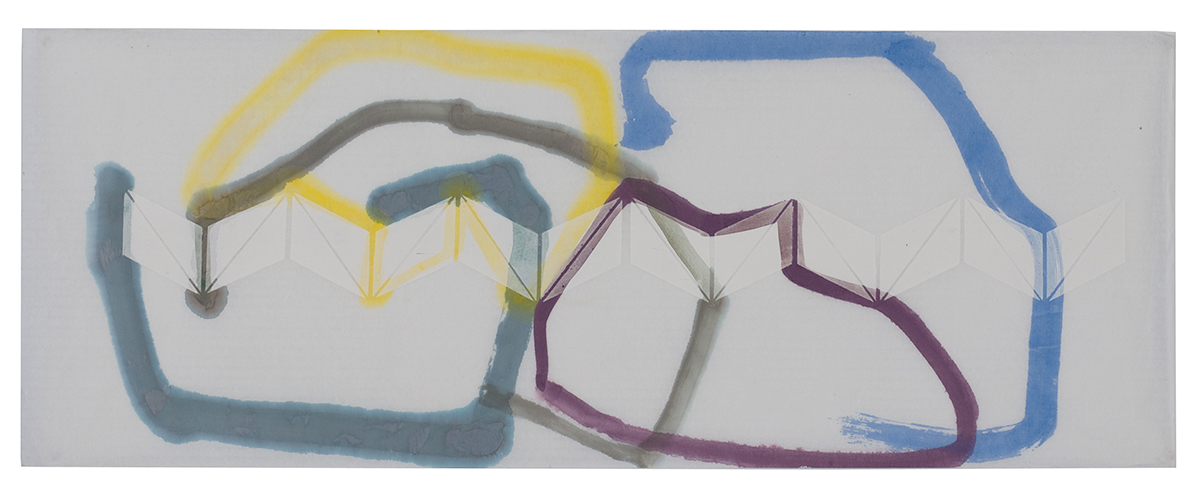Image précédente Image suivante Geste et motif 1-1 sérigraphie et aquarelle sur papier de riz (121 x 46 cm), photo Luc Schrobitgen